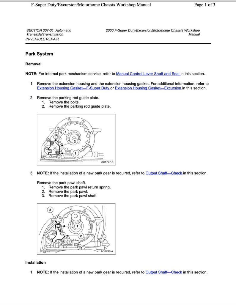 Highlights Designed by Repairo Digital download Digital file type(s) 1 PDF Comprehensive Car Repair & Maintenance Workshop Manuals (PDF) Instant Download Maintain and repair your vehicle confidently using our professional-grade digital workshop manuals. Designed for clarity and ease of use, each manual includes detailed, step-by-step instructions accompanied by high-quality diagrams, photographs, and technical illustrations. Manual DetailsLanguage EnglishPages 6952Format PDF Content Included- Maintenance- Engine- Engine electrical system- Fuel preparation and control- Fuel supply- Cooling- Exhaust system- Clutch- Engine and transmission mounting- Manual gearbox- Automatic transmission- Gearshift- Transfer box- Twin-clutch gearbox (DKG)- Front axle, front suspension- Steering and Wheel Alignment- Rear axle, rear-wheel drive, guide- Brakes- Pedals- Wheels with tyres- Integrated Suspension Systems- Body- Body equipment- Seats- Slidetilt sunroof and soft top- Audio, navigation, information systems- Distance system, Cruise control, remote operation- Electric motor- Parts and accessories for engine and chassis- Body parts and accessories- Communication systems- Paint- Wiring DiagramsWhy Choose Our Manuals?* Instant PDF Download* Accessible on PC, Mac, Tablets, and Smartphones* Fully Searchable and Indexed* Unlimited Printing and Usage* Clear, User-Friendly Instructions* Professionally Illustrated GuidesInstant AccessYour manual is available immediately after purchase via a secure Google Drive download link.Access, view, or print anytime at your convenience.Suitable ForFord F250-F550 SuperDuty 1998-2004 Ideal ForDIY Car EnthusiastsAutomotive ProfessionalsRepair WorkshopsShop with ConfidenceYour satisfaction is guaranteed. For any questions or assistance, please reach outwe're always here to help!Please NoteThis listing is for digital PDF files only; no physical product will be shipped. Your Satisfaction Is Our Priority!